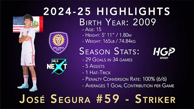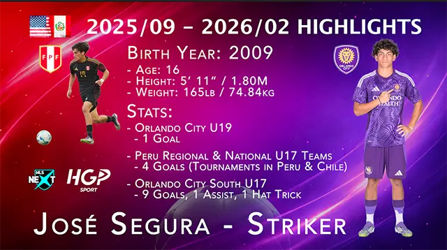 Peruvian-American striker born in 2009, known for goal scoring, intelligent movement, and attacking impact at the MLS NEXT and international level.